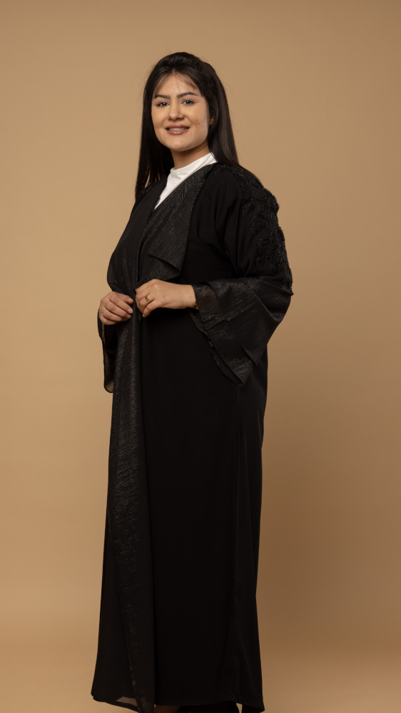 عباية بشك يدوي من الخرز الأسود تضيف لمسة من الفخامة تعتبر خيار مثالي لمن تبحث عن إطلالة فاخرة ومتميزة