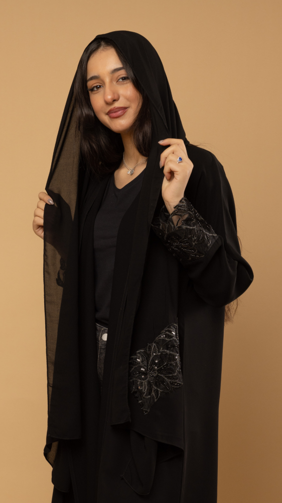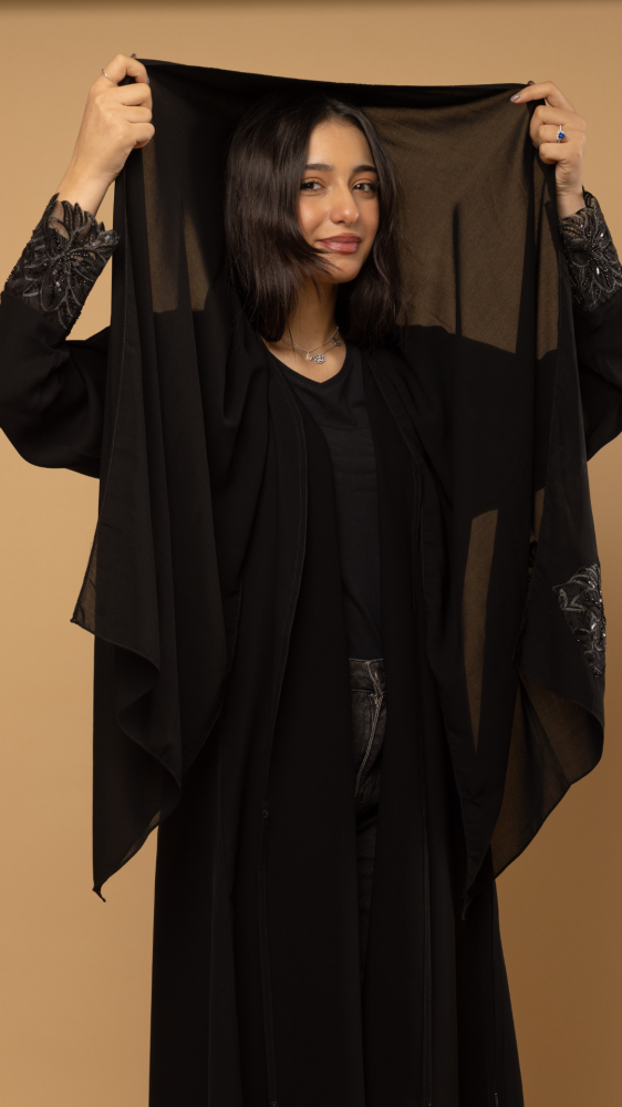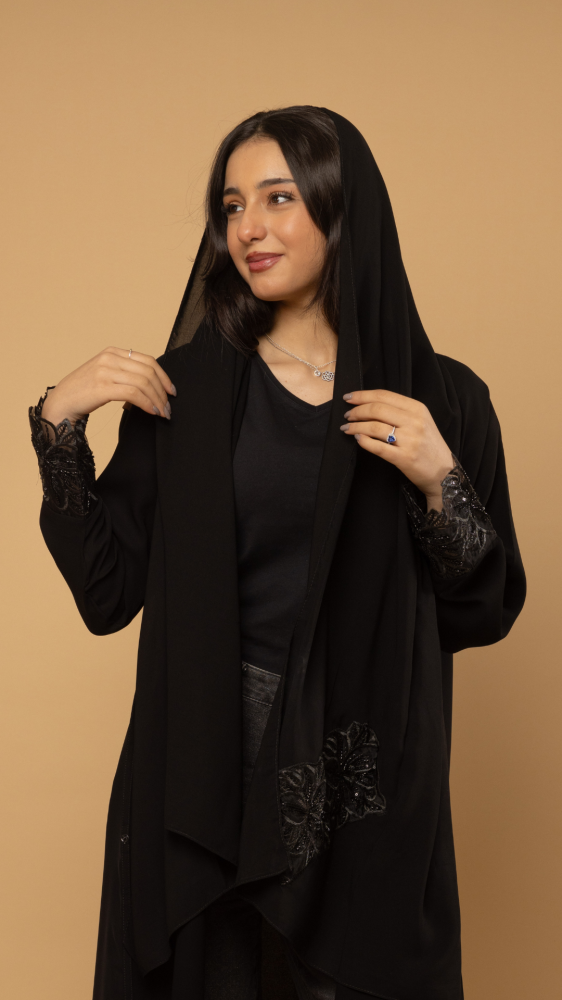 عباية أنيقة بتصميم مميز من الدانتيل مع الخرز بالأكمام واسفل العباية مما تعكس الاناقة. تجمع مابين الاناقة والراحة خيار مثالي للمناسبات والإطلالات اليومية .