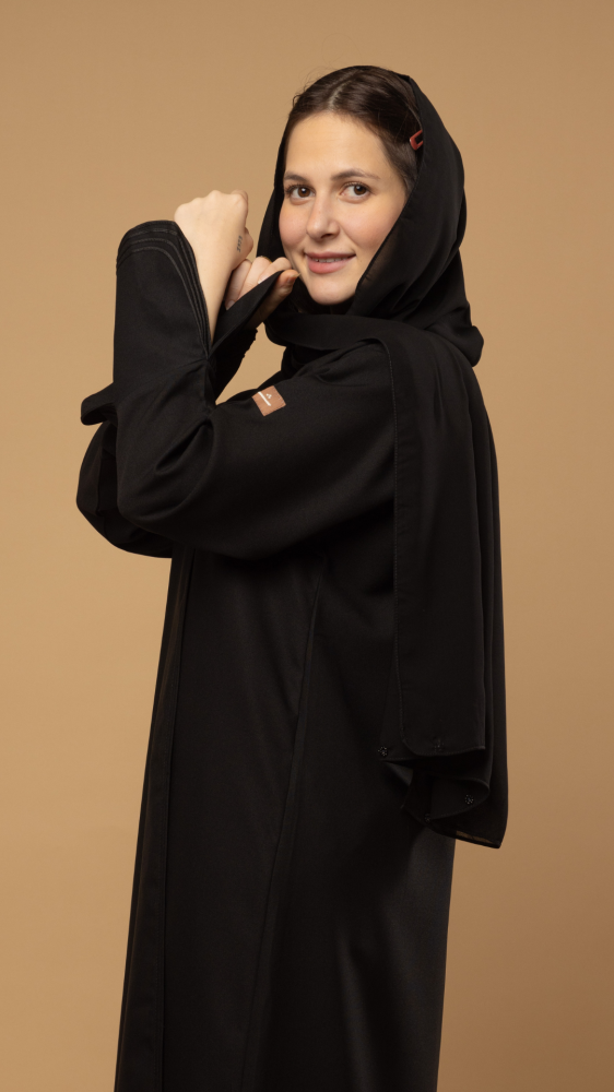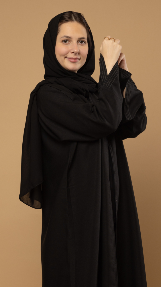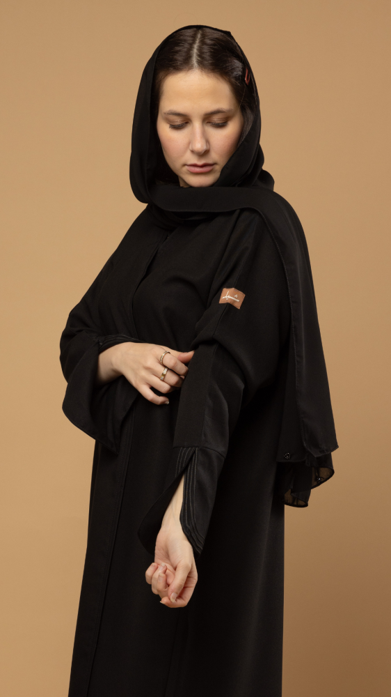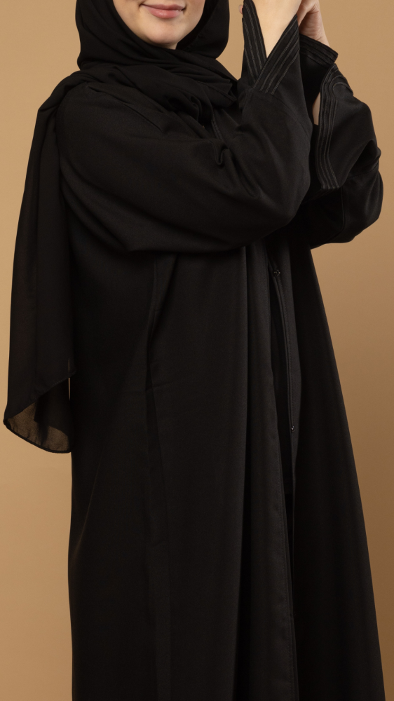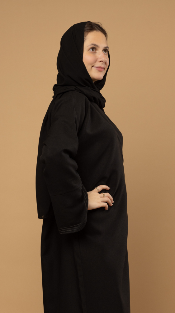 عباية يومية عملية بتصميم بقصة في الكم بالقيطان الأسود يضفي لمسة من النعومة خيار مثالي للاستخدام اليومي والعمل