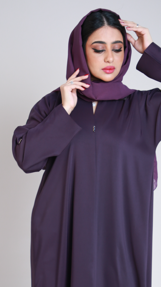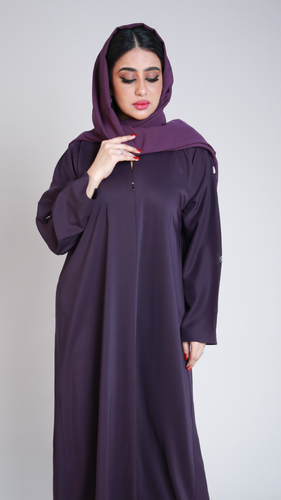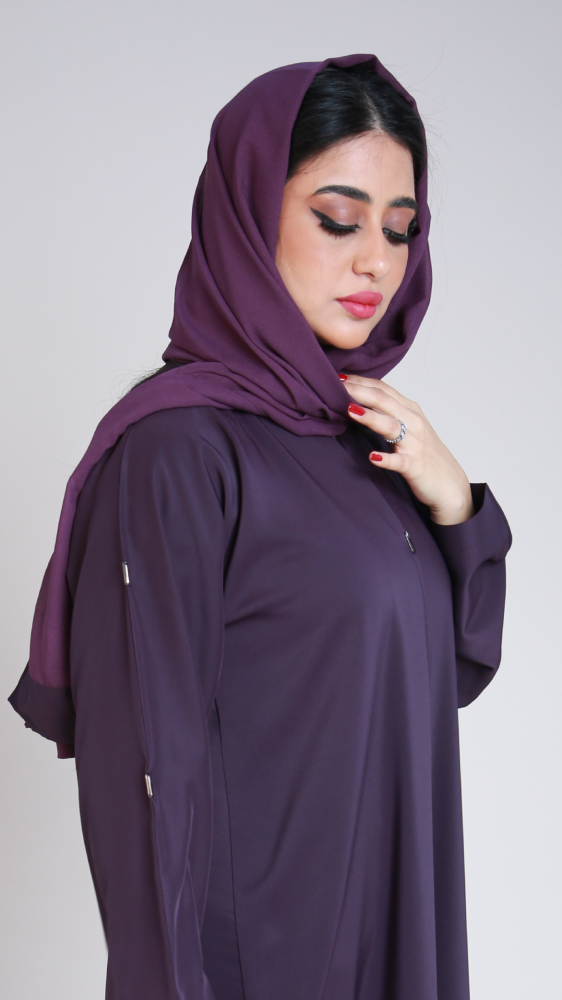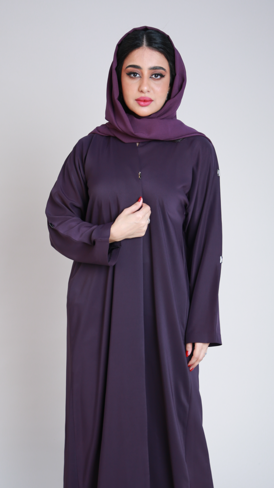 عباية ملونة بتصميم عصري باللون البنفسجي مصنوع من خامة مريحة تضمن الراحة طوال اليوم