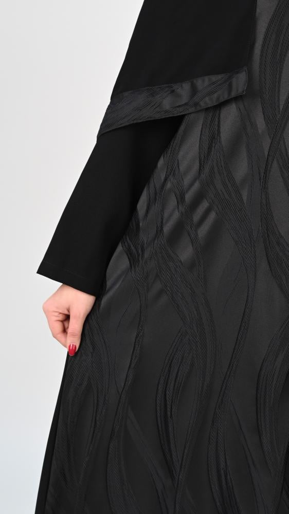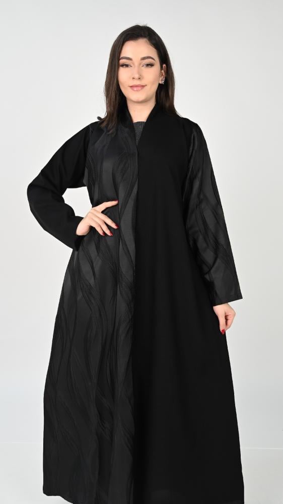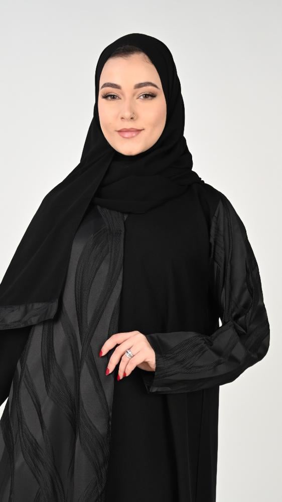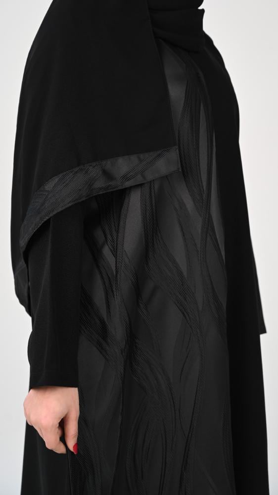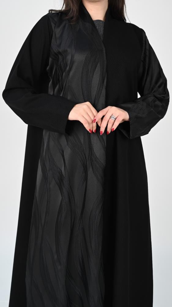 عباية من الجاكار في الأمام وعلى الكم تصميم مميز للمناسبات يضفي طابع من الفخامة والرقي