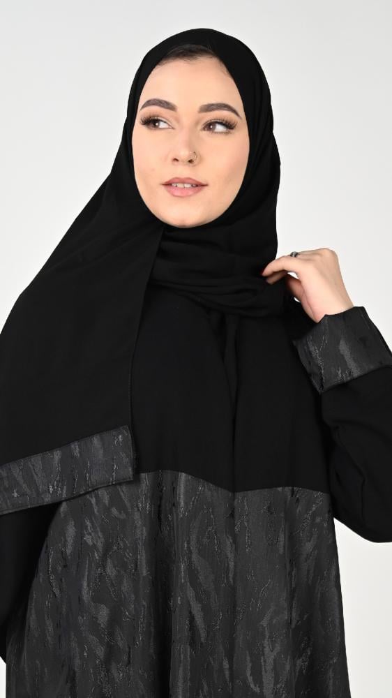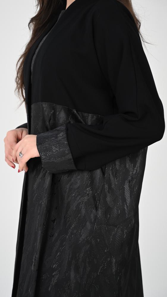 عباية بتصميم من قماش الجاكار على قلبة الكم تضفي طابع من الفخامة والرقي مما يجعلها الخيار الأمثل لجميع المناسبات