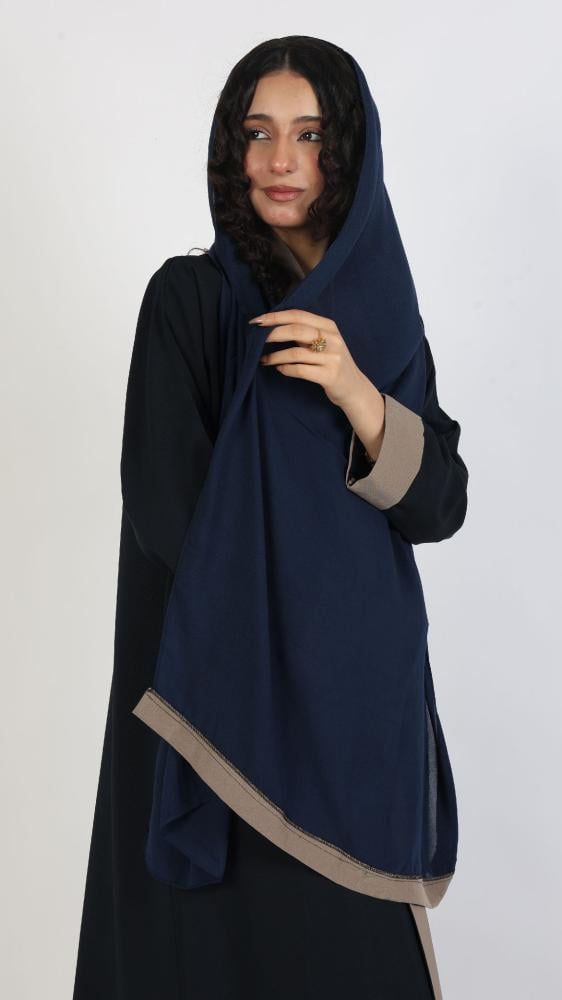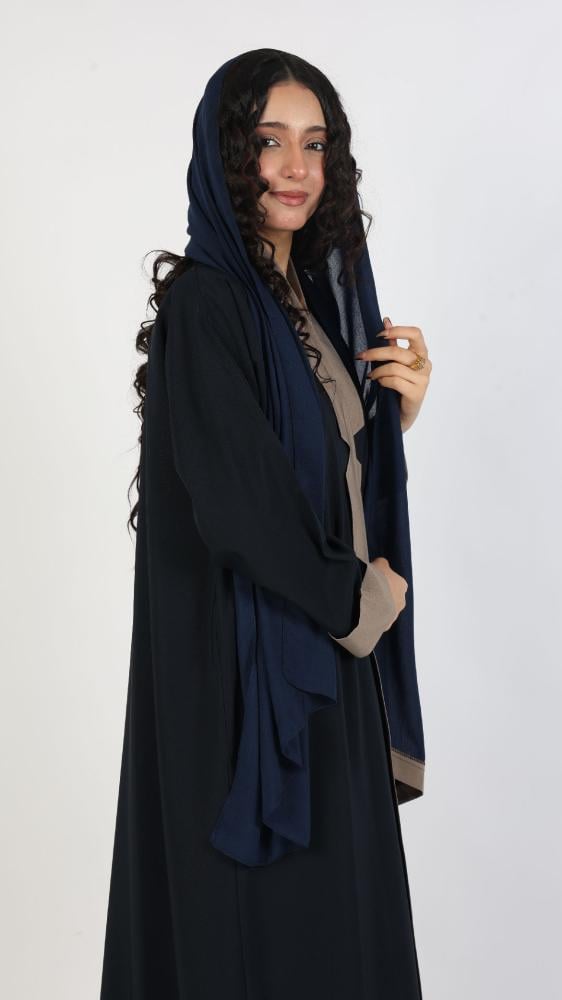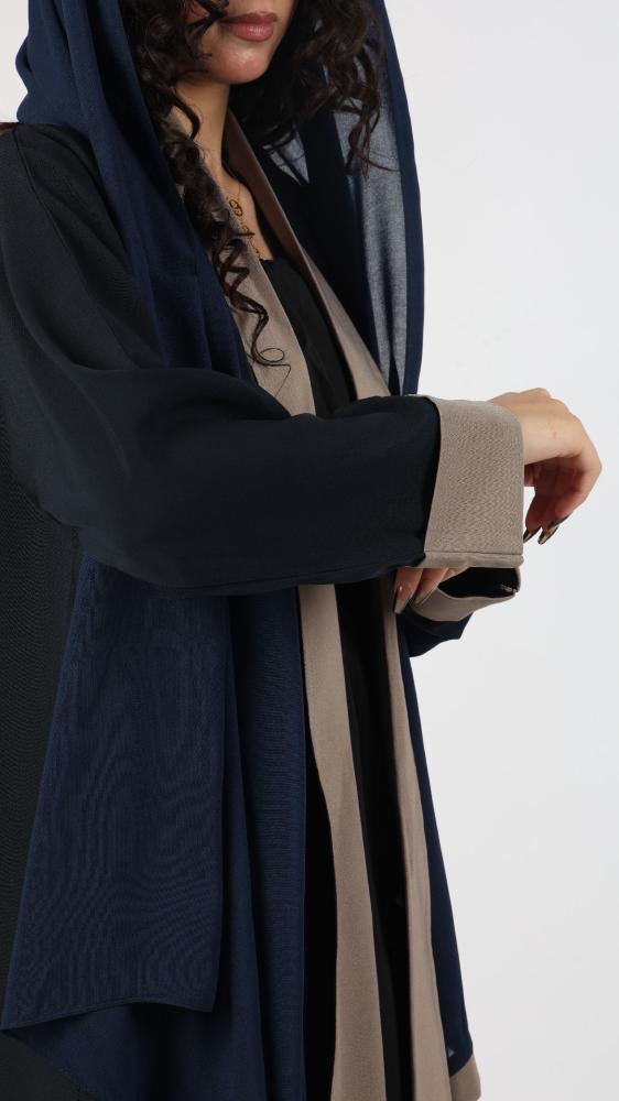 عباية مناسبة للسفر والدوام مع ثلاث قطع داخلية القطعة الداخلية باللون البيج والعباية الخارجية باللون الكحلي