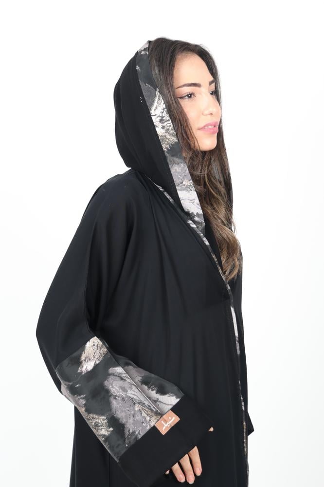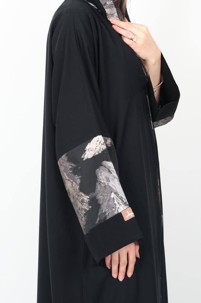 عباية بقماش الاوقنزا على الكم مع اضافة قيطان بالطول